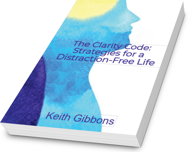 Unlock your potential with 'The Clarity Code' by Keith Gibbons. This practical guide offers tools to eliminate distractions, boost focus, and embrace mindfulness. Perfectly sized for everyday use, it helps you live intentionally, increase productivity, and regain control for a more centered life.
